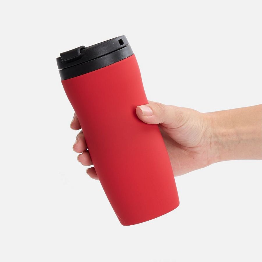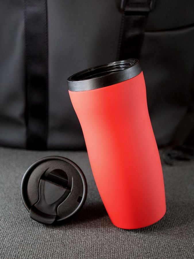 Двухслойная конструкция из нержавеющей стали снаружи и пищевого пластика внутри. Герметичная завинчивающаяся крышка с откидным клапаном для питья. Покрытие софт-тач. В отверстие в крышке можно вставить шнурок для удобного ношения стакана на руке. Шнурок в комплект не входит.