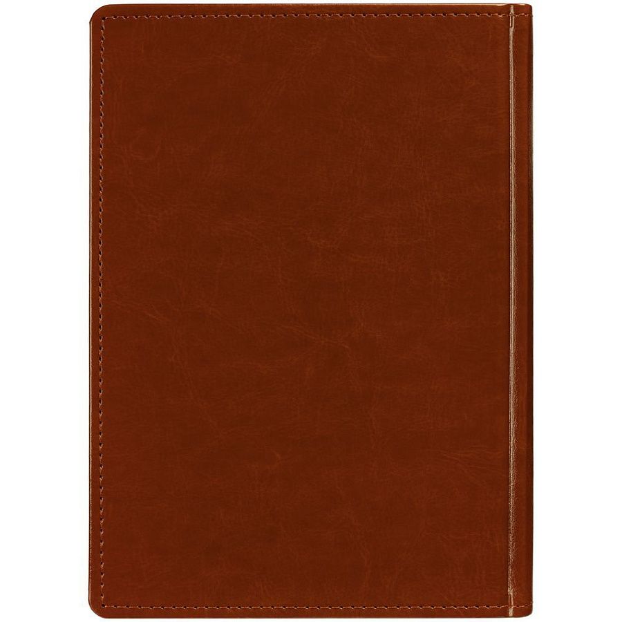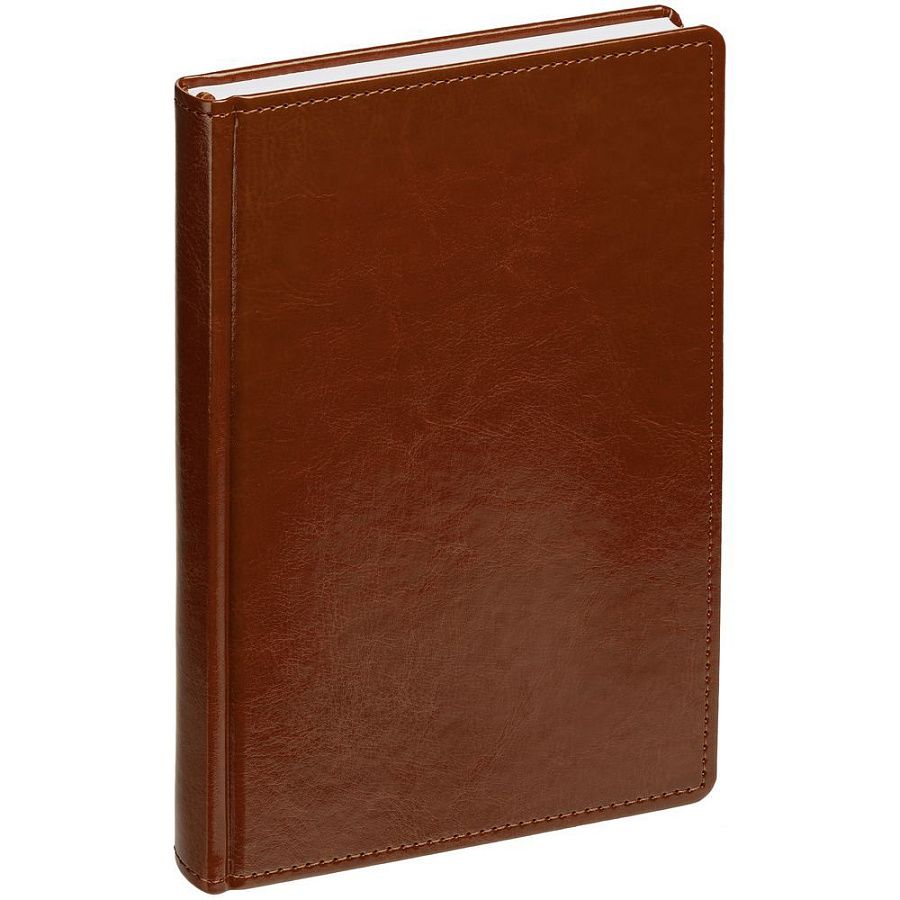 Ежедневник с твердой обложкой без поролона, выполнен из материала Nebraska, коричневый RR, дополнен ляссе и капталом в цвет обложки.
