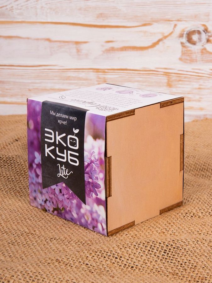 В наборе: деревянный куб, бумажный стаканчик, питательный грунт, семена, вермикулит.