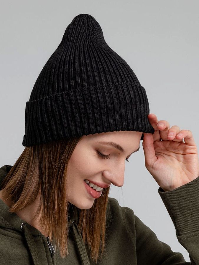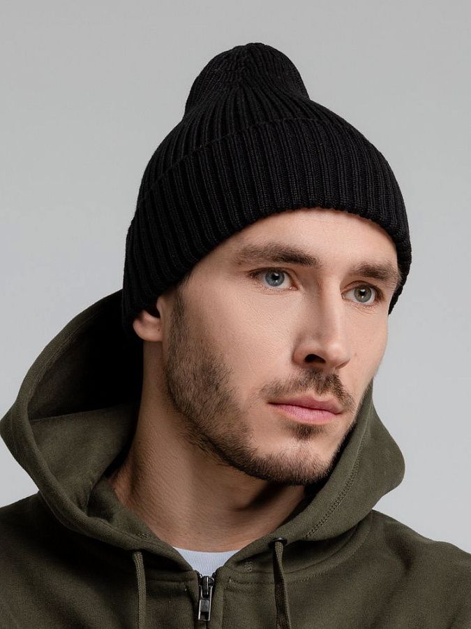 Однослойная шапка, выполненная резинкой 2x2.