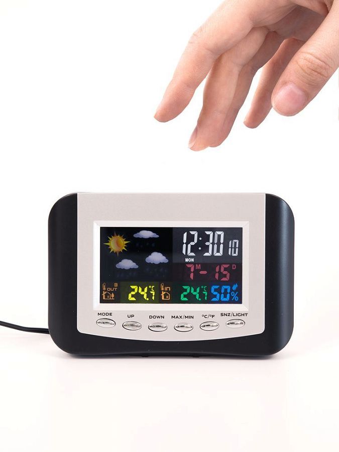 Метеостанция с цветным дисплеем и выносным датчиком точно покажет погоду в доме и за окном.