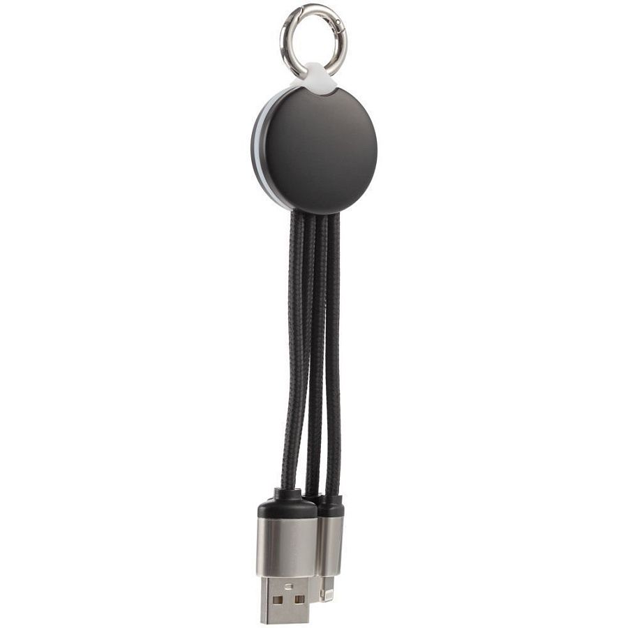 Кабель предназначен для зарядки устройств с разъемами Type-C, Micro USB и Lightning. Передача данных не поддерживается.