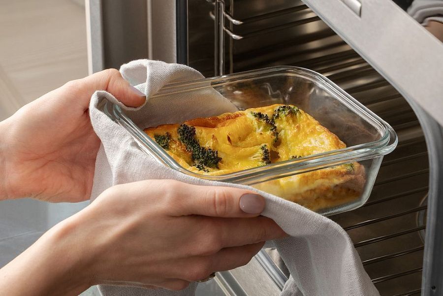 - Стеклянную чашу можно нагревать в духовке при температуре до 400 °C