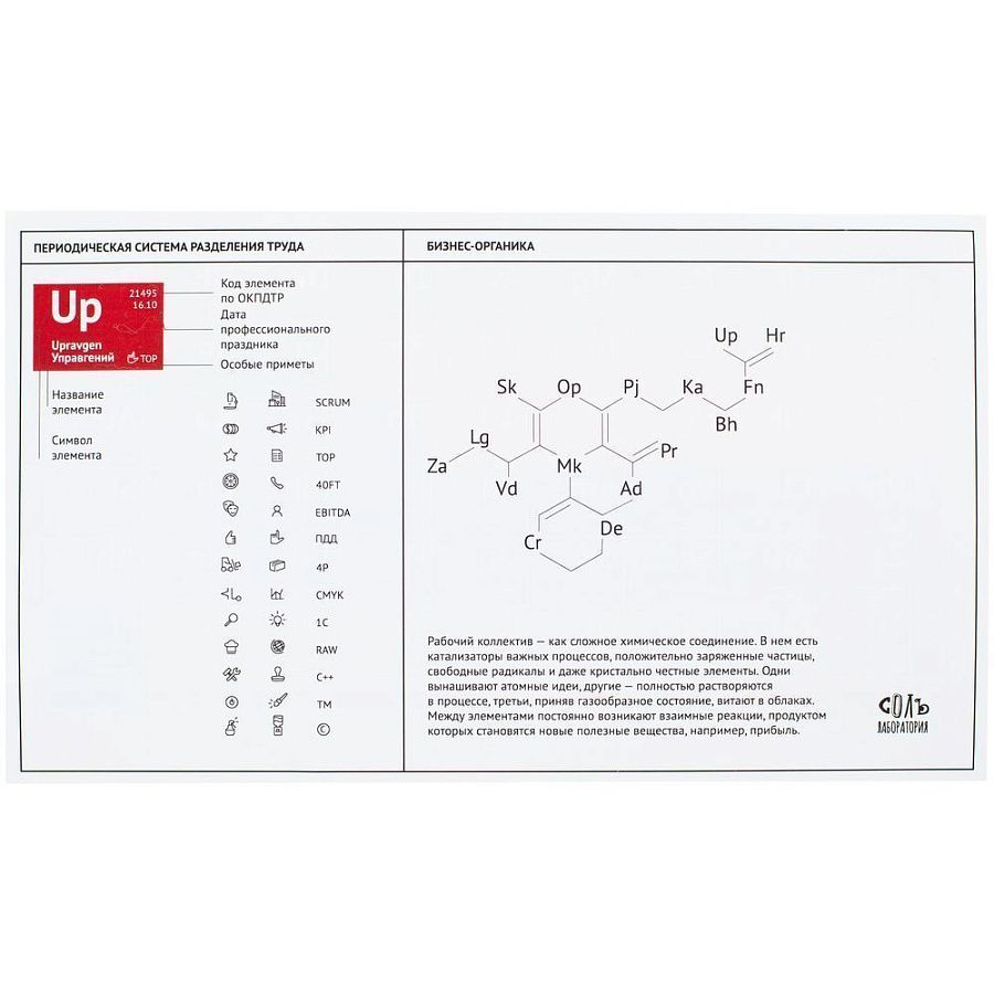 Одни вынашивают атомные идеи, другие полностью растворяются в процессе, третьи, приняв газообразное состояние, витают в облаках. Между элементами постоянно возникают взаимные реакции, продуктом которых становятся новые полезные вещества, например, прибыль.