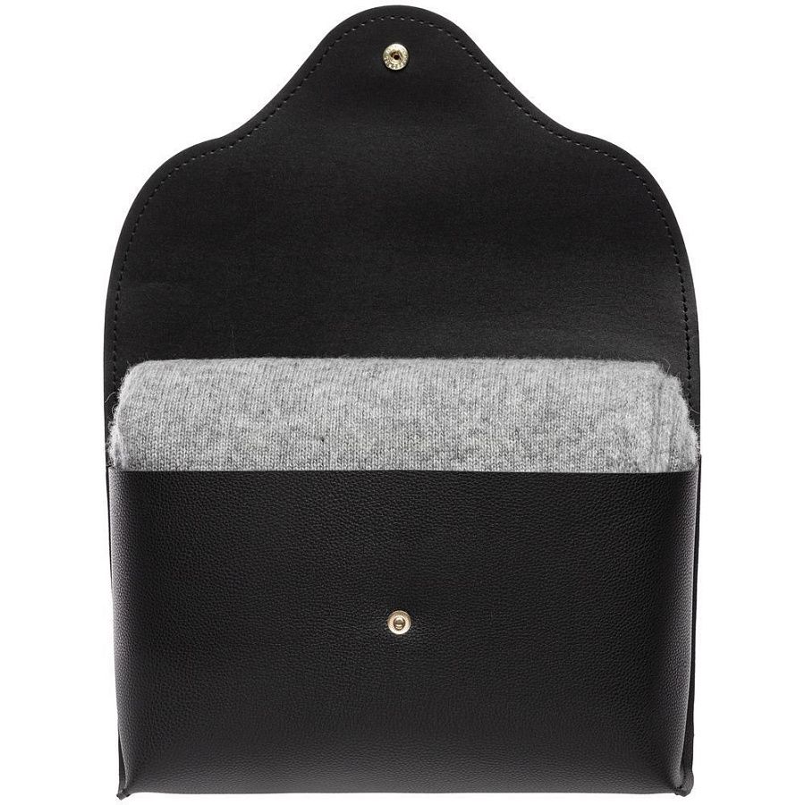 Благодаря кнопке плед можно аккуратно застегнуть посередине, полностью укутавшись в его теплые объятия. Элегантная упаковка-клатч добавляет пледу особого шарма — получается изысканный элитный деловой подарок.