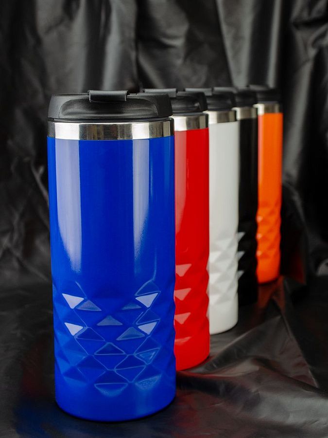 Покрытие кружки Prism напоминает глянцевую эмаль, — и рельефная поверхность корпуса дополнительно подчеркивается яркими бликами.