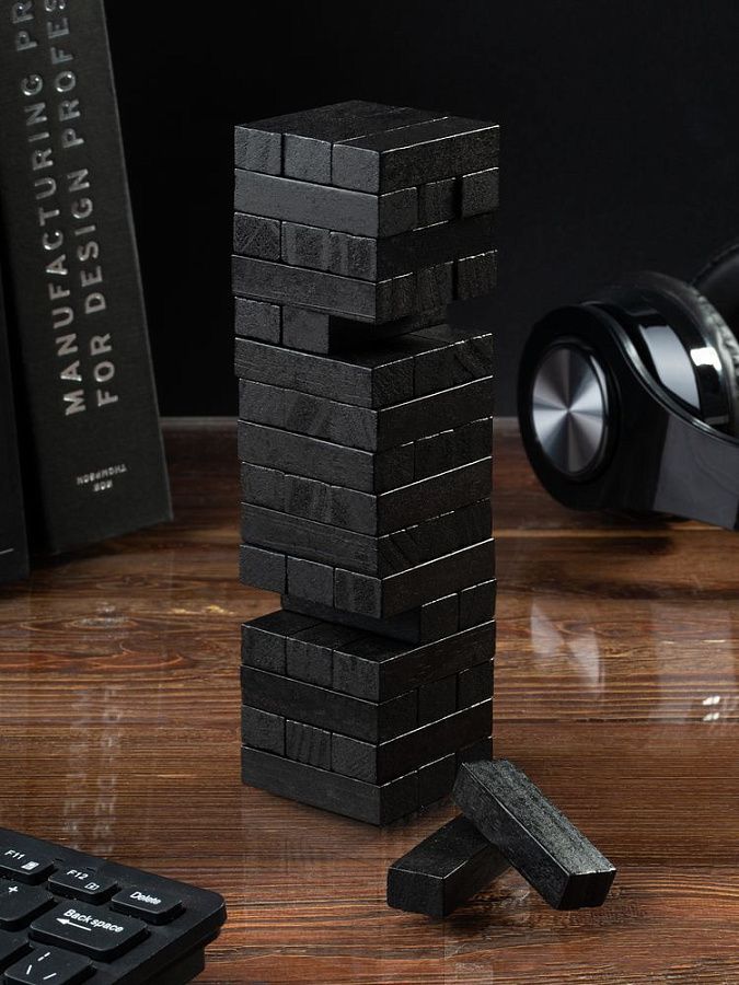 Второе название игры — «Падающая башня». Сначала строится башня: по три брусочка в ряд, каждый слой перпендикулярен предыдущему. Затем игроки по очереди вытаскивают по одному брусочку и кладут его на верх сооружения. Тот игрок, кто обрушит башню, проиграл. Игра тренирует ловкость, внимание, терпение и пространственное мышление, что очень важно и в бизнесе. Так что подарок не только развлечет, но и может стать символом-пожеланием.