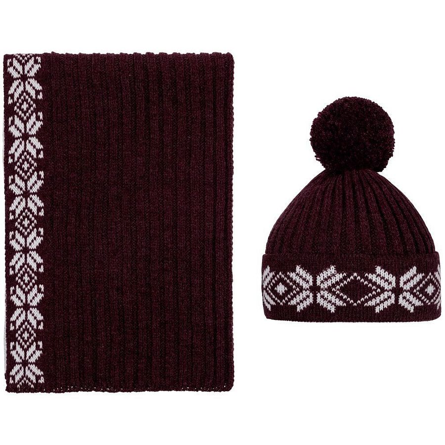Выполнен с совмещением фактурной вязки и жаккардового узора.