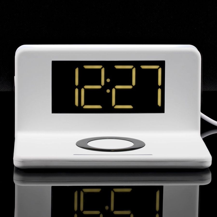 Pitstop — многофункциональное устройство, которое сочетает в себе функции настольных часов, будильника, станции для беспроводной и проводной зарядки устройств и ночника.