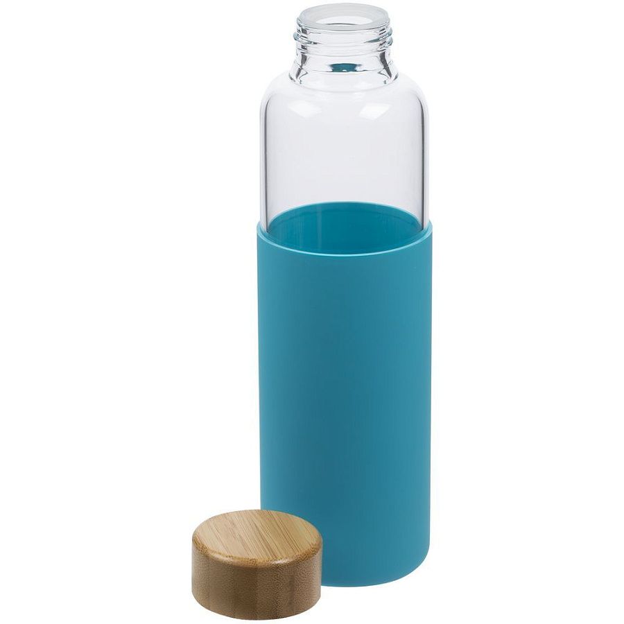 Бутылка со стеклянной колбой и крышкой из бамбука — изящное решение для тех, кто предпочитает природные материалы. Яркий силиконовый чехол защищает колбу от повреждений.