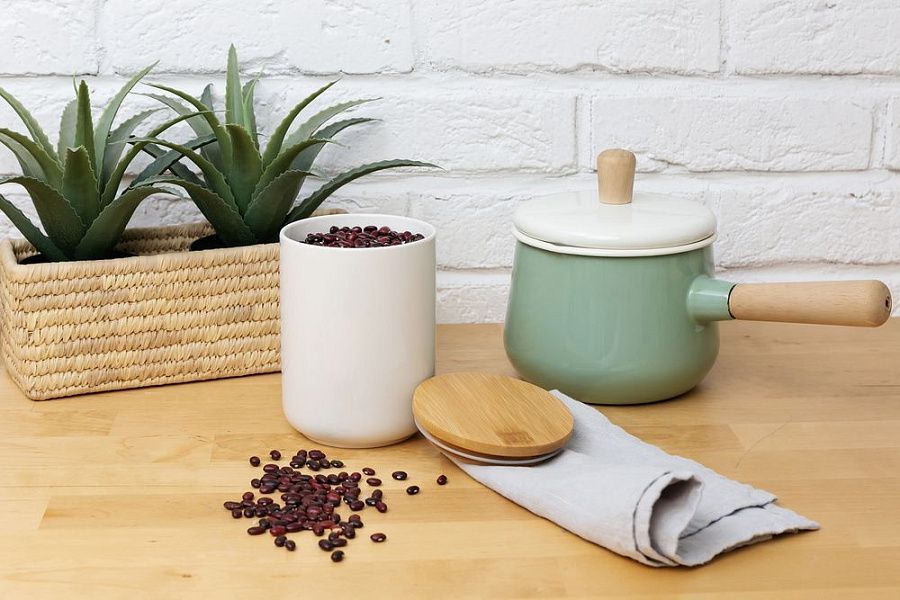 Фарфор и бамбук — идеальная пара для светлой современной кухни. Силиконовый уплотнитель надежно защищает содержимое банки от влаги и посторонних запахов.