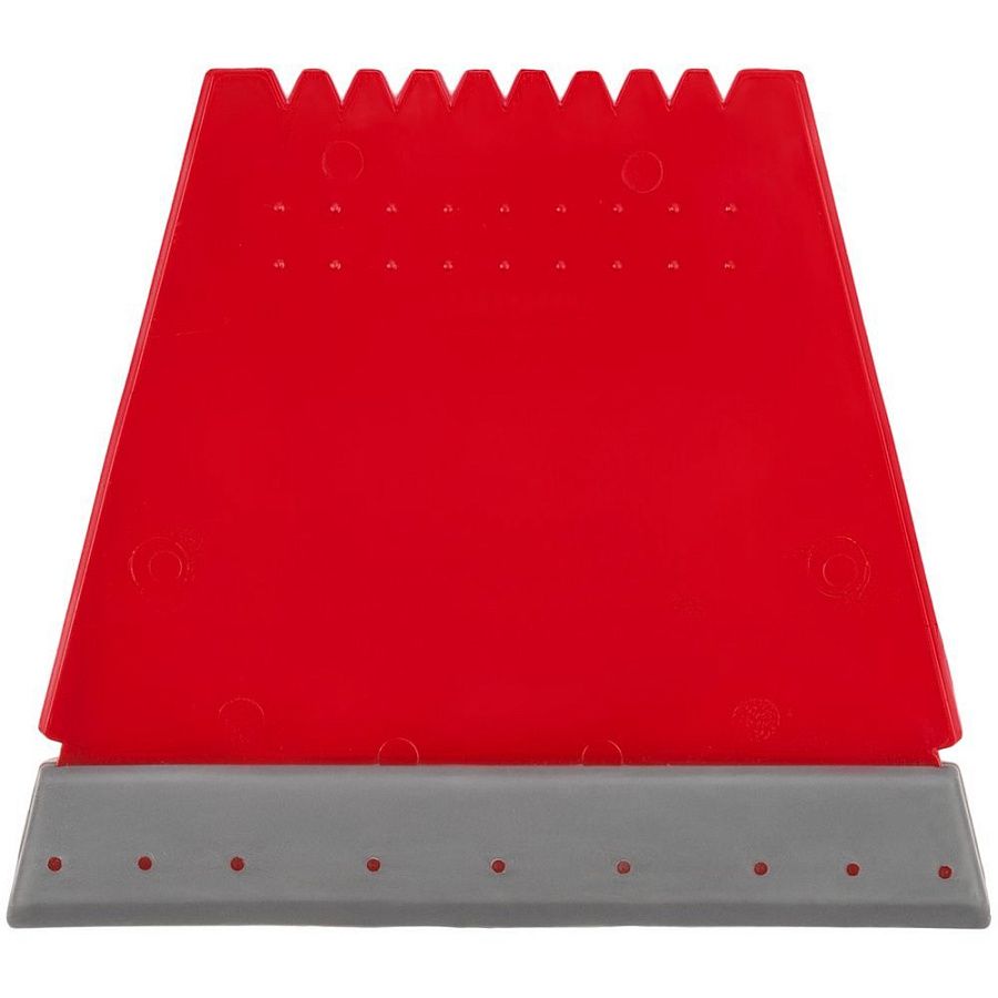 Все 4 стороны скребка рабочие: резиновый водосгон с широкой стороны, зубья-ледорубы с узкой и две скошенные грани по бокам.