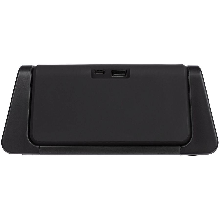Зарядная станция совместима со всеми мобильными устройствами, поддерживающими технологию беспроводной зарядки Qi. Зарядка начнется автоматически при размещении смартфона на индукционной площадке. USB-порт для проводной зарядки расположен на задней стенке устройства.