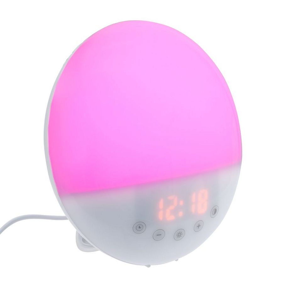 За 30 минут до звонка будильника активируется подсветка и ее яркость постепенно увеличивается — свет медленно выводит организм из фазы глубокого сна и вы будто встаете «с первыми лучами солнца». Эффект мягкого пробуждения можно дополнить натуральными звуками природы.