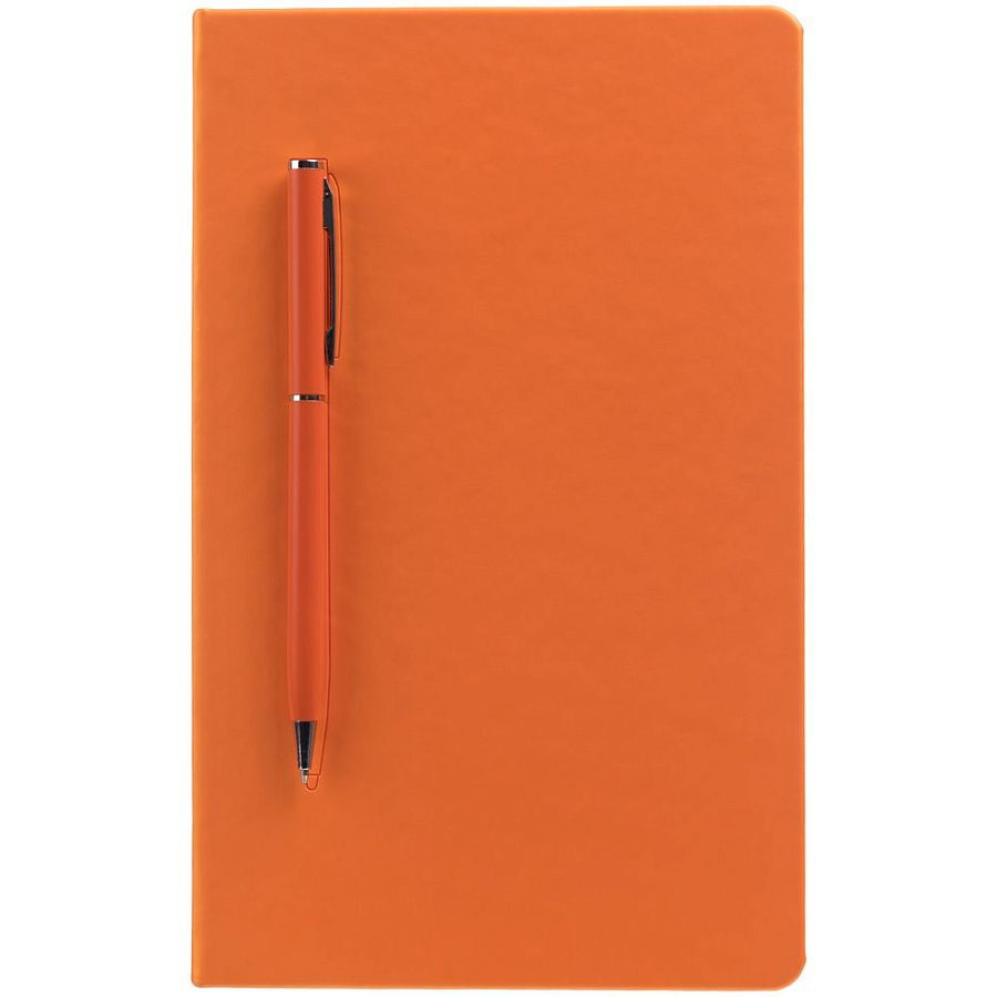 Ежедневник в твердой обложке с цветным ляссе и магнитом, удерживающим ручку.