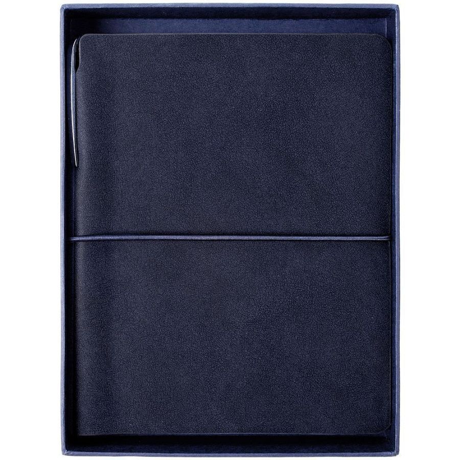 Ежедневник из искусственного материала, напоминающего замшу, и ручка с покрытием софт-тач, которая удобно прячется за обложку ежедневника.