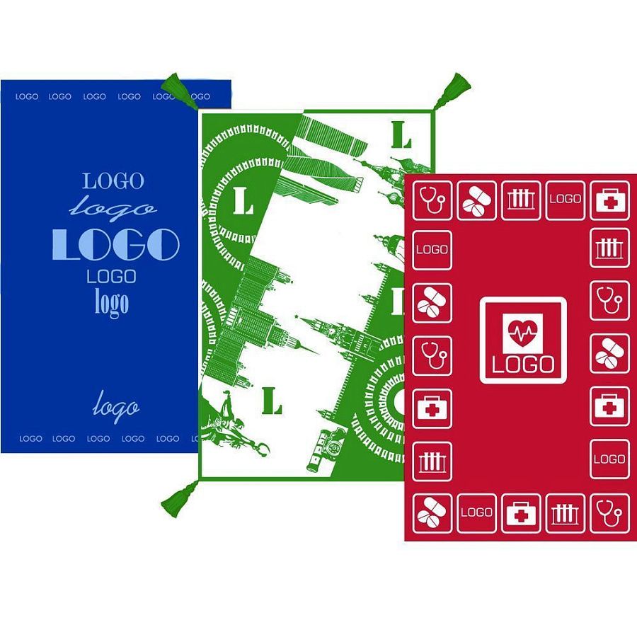 Плед с вывязанным логотипом и индивидуальным рисунком в фирменной цветовой гамме.