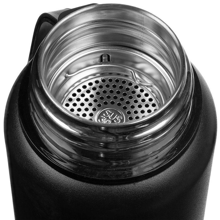 Термос в строгом металлическом корпусе с вакуумной изоляцией. Завинчивающаяся пробка, крышка-чашка и ситечко для фильтрации — удобно заваривать чай или кофе. Напиток останется горячим, а чаинки не попадут в чашку.