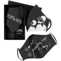 Набор из трех многоразовых масок из дышащей ложной сетки с ярким принтом с гигиенической хлопковой подкладкой и заушниками-резинками.