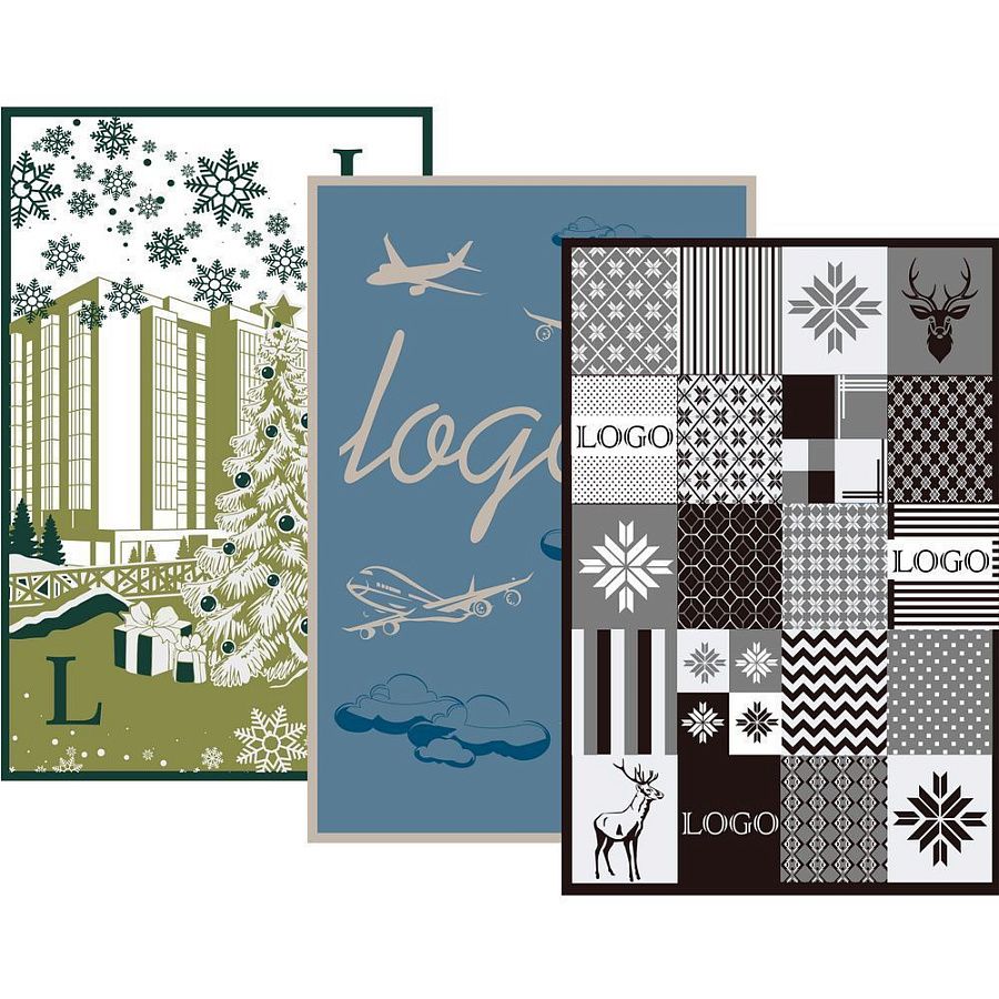 Плед с вывязанным логотипом и индивидуальным рисунком в фирменной цветовой гамме.