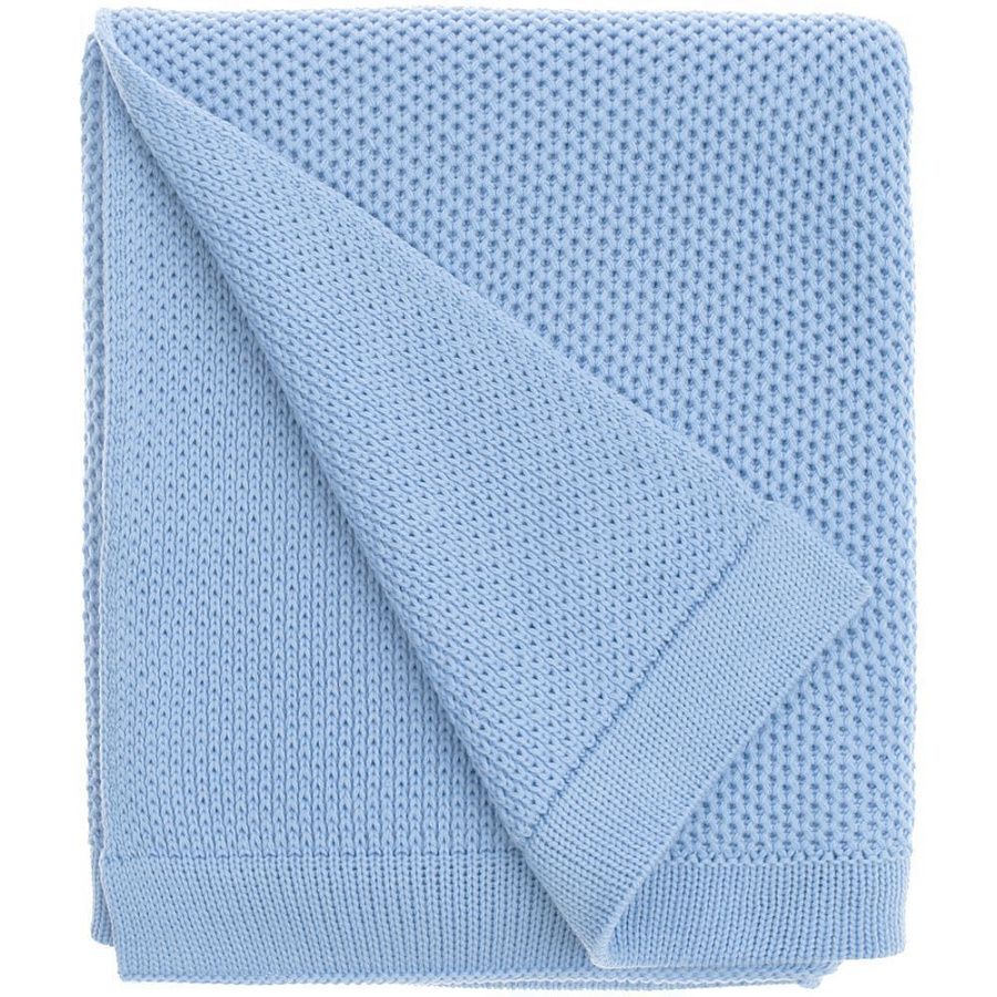 Плед с вывязанным логотипом и рельефным узором в фирменном цвете вашей компании.