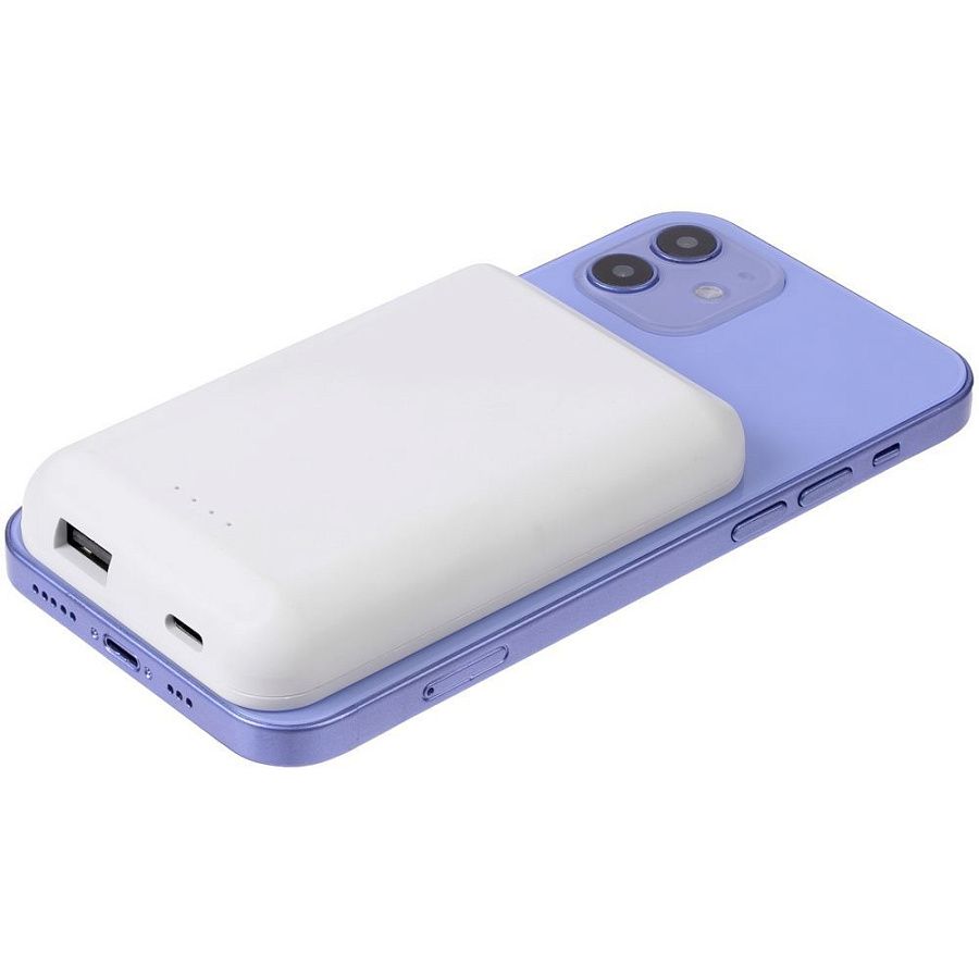 Компактный аккумулятор с функцией беспроводной зарядки и магнитной фиксацией к задней крышке iPhone 12/13/14/15.