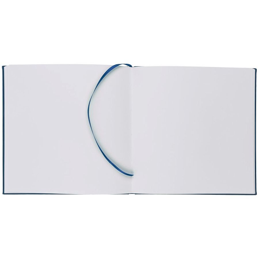 Скетчбук с твердой обложкой выполнен из материала Soft Touch, синий НН, дополнен ляссе в цвет обложки.