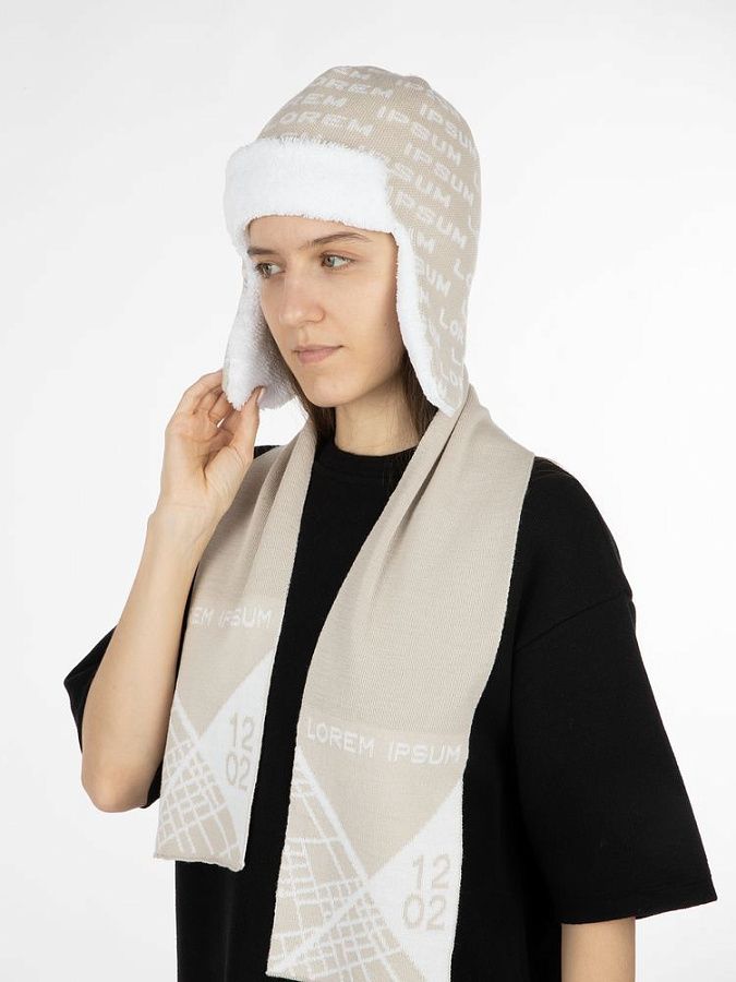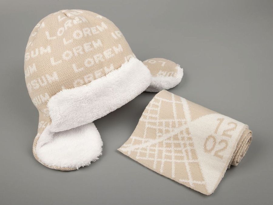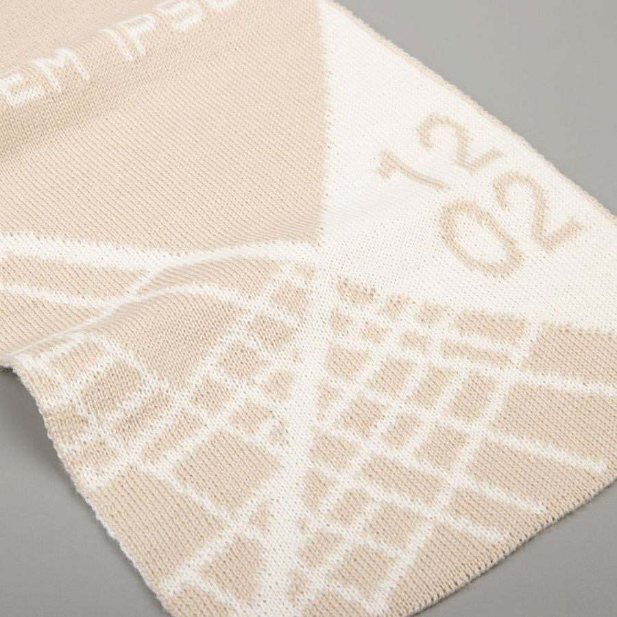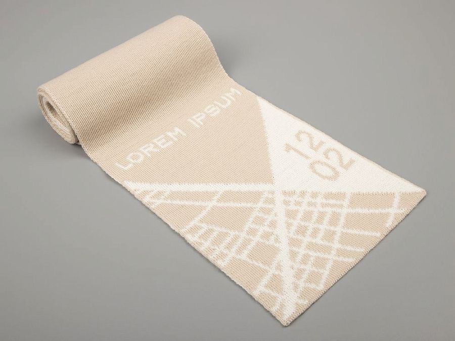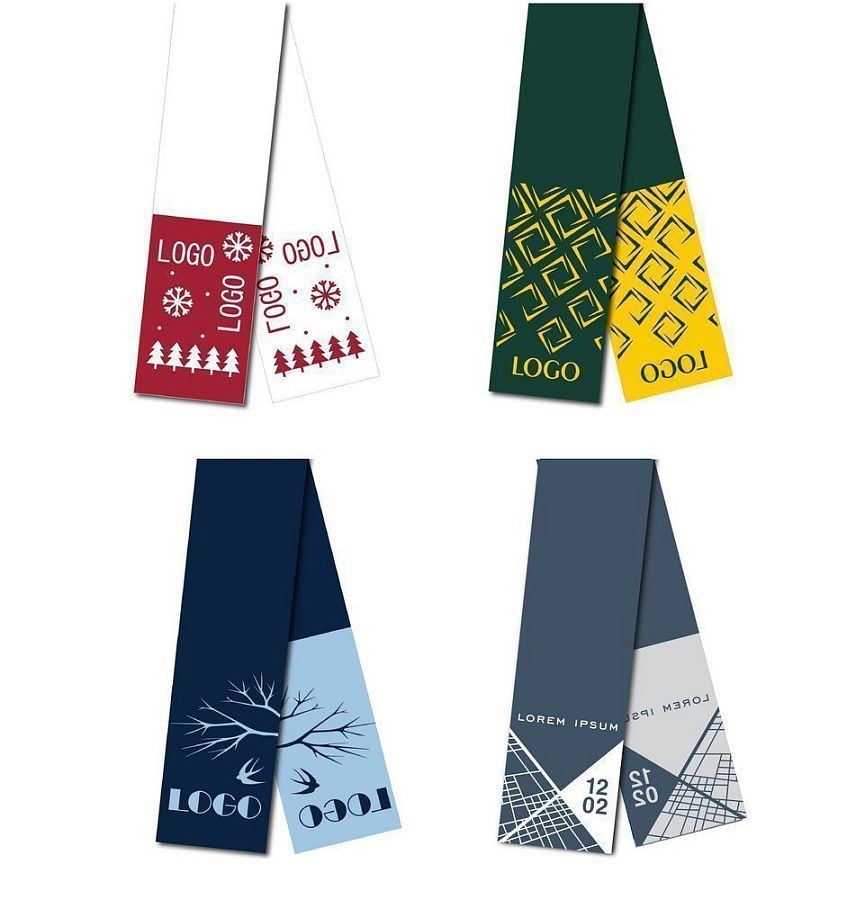 Шарф с вывязанным логотипом и/или индивидуальным рисунком в фирменной цветовой гамме.