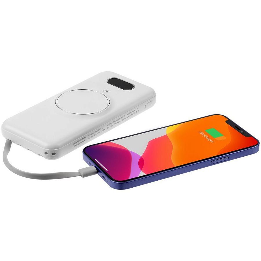 Интересная особенность аккумуляторов Omni — совершенно автономная конструкция: встроенные кабели позволяют заряжать как самые разные электронные устройства, так и сам аккумулятор. Если же смартфон поддерживает беспроводной заряд, то кабель вообще не нужен. Наглядный индикатор заряда в процентах.