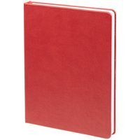 Ежедневник с твердой обложкой. Выполнен из материала Latte, красный, дополнен ляссе в цвет обложки.