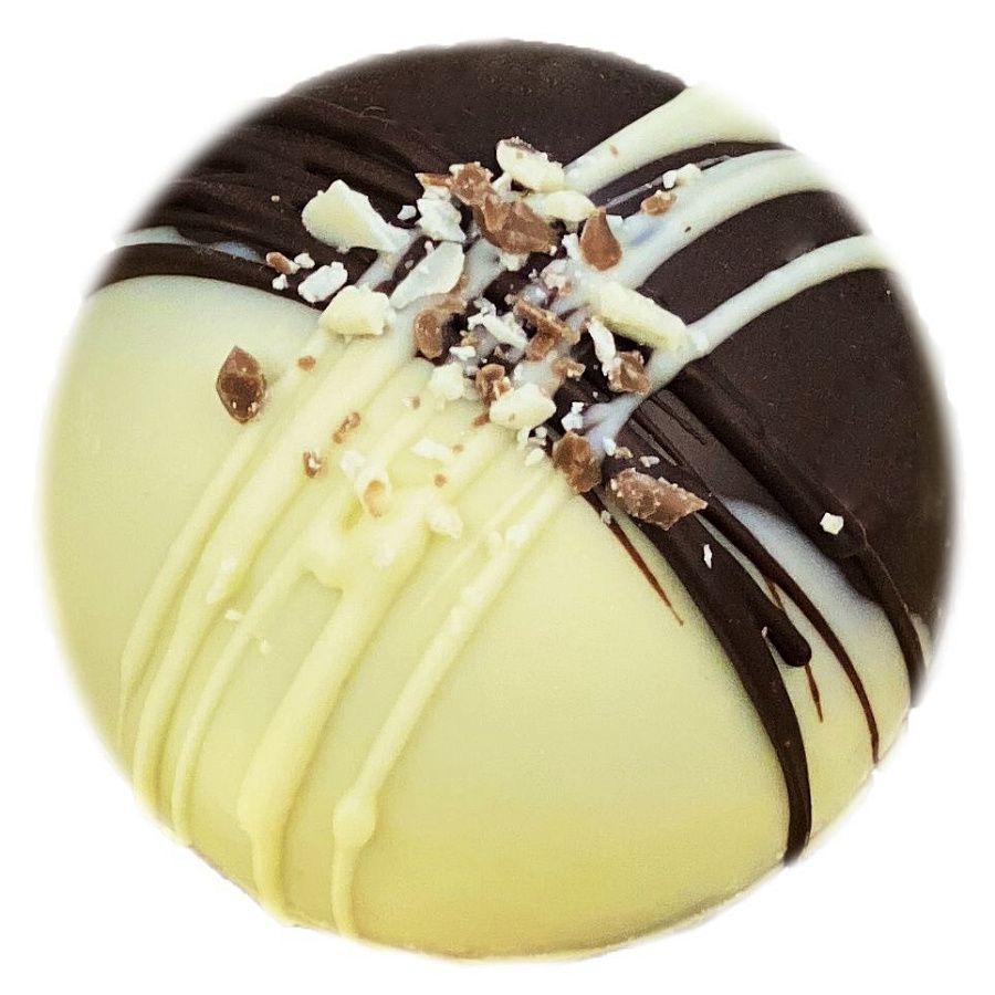 Состав: сфера из темного и белого шоколада, кофе растворимый сублимированный, маршмеллоу.