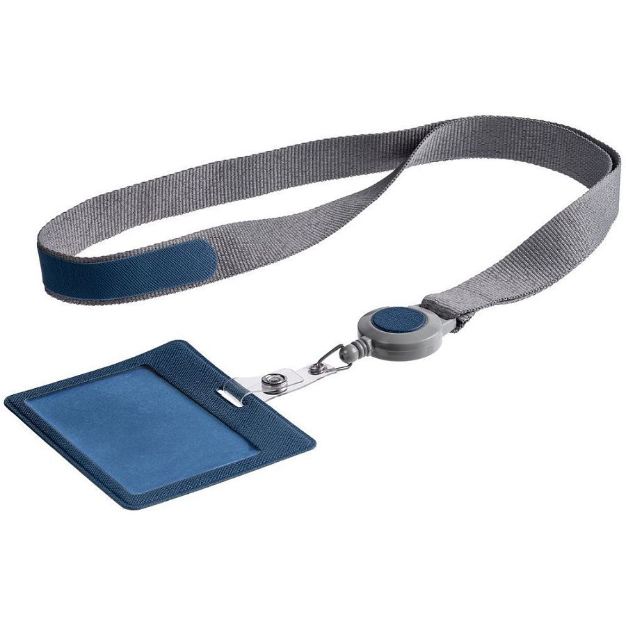 Чехол для пропуска с лентой и ретрактором Devon, синий