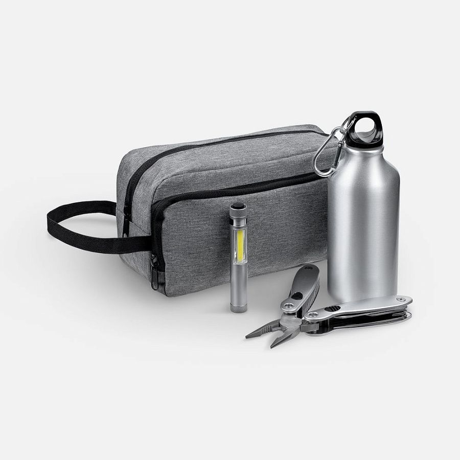 мультитул, фонарик, бутылка - алюминий; несессер - полиэстер