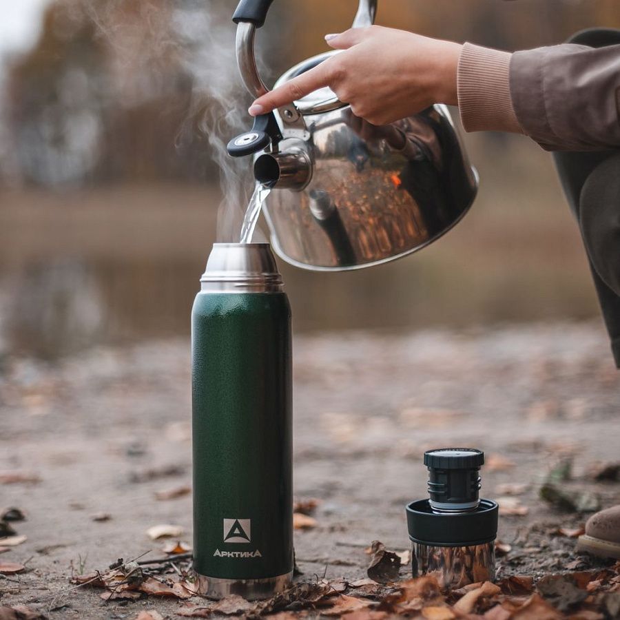 - Конструкция с двойными стенками и вакуумной изоляцией сохраняет температуру до 28 часов