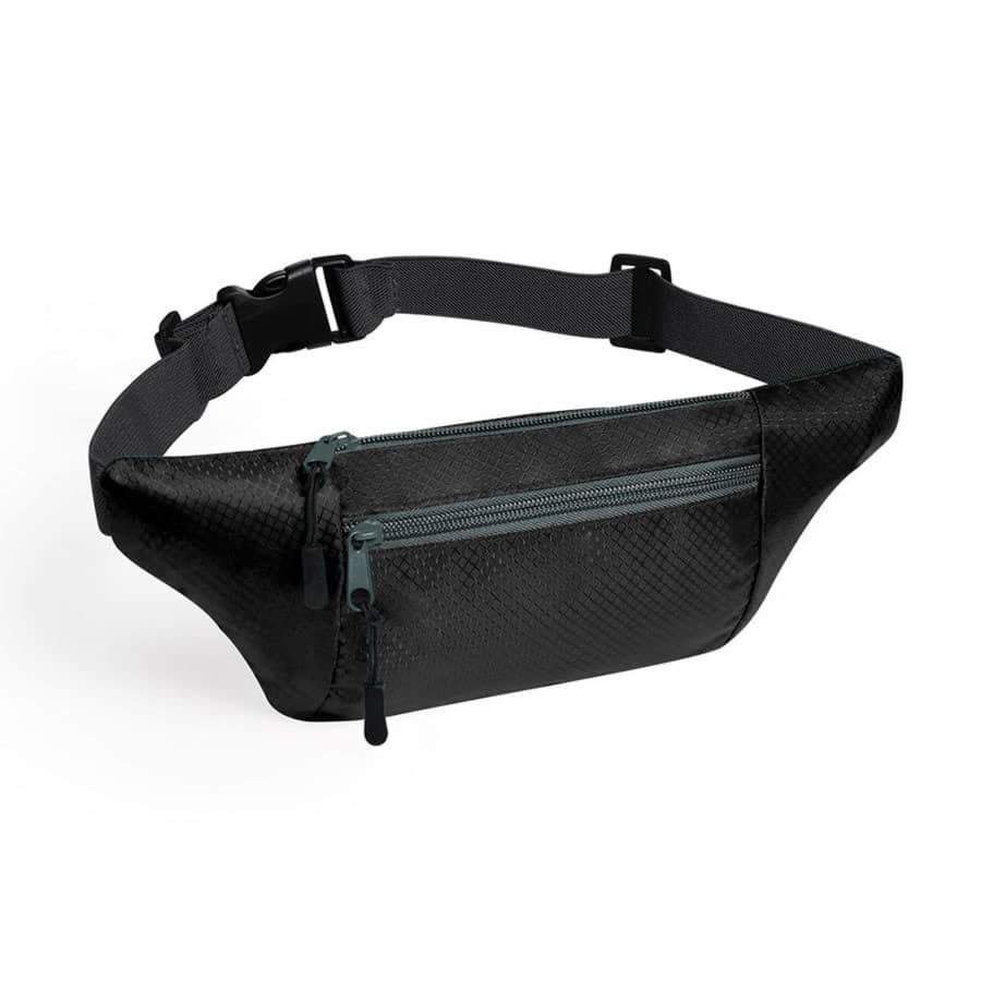 Поясная сумка из интересного материала рипстоп отлично подойдет для прогулок или занятий на свежем воздухе. Рипсто́п (от англ. ripstop) — тип ткани, в структуре которого использована упрочнённая армированная нить из нейлона. Сумки из такого материала прочные, но легкие, с интересным дизайном поверхности материала, напоминающим медовые соты. Сумка с двумя отделами на молнии для удобства хранения небольших, но важных вещей. Крепится на регулируемую широкую стропу с пластиковой застежкой. Упакована сумка в прозрачный пакет