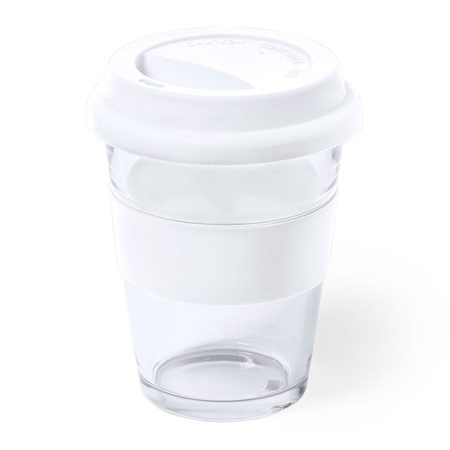 Стеклянный стакан с цветной силиконовой крышкой и манжетой. Манжета обеспечивает безопасность ваших рук при использовании стакана для горячих напитков. Индивидуальная упаковка - белая картонная коробка с изображением продукта.