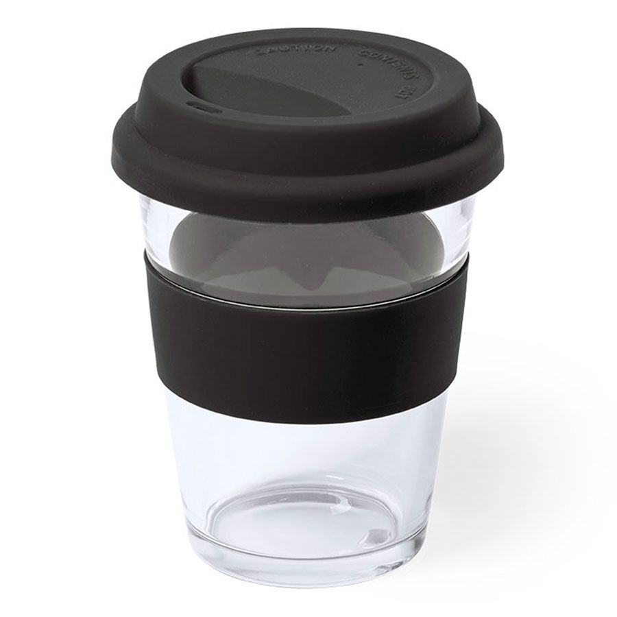 Стеклянный стакан с цветной силиконовой крышкой и манжетой. Манжета обеспечивает безопасность ваших рук при использовании стакана для горячих напитков. Индивидуальная упаковка - белая картонная коробка с изображением продукта.