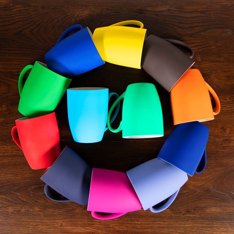 • Прорезиненные кружки из soft-touch