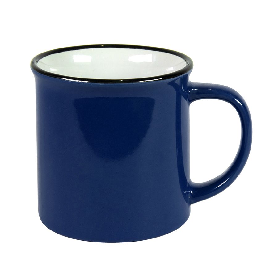 Кружка всем знакомой формы из советского прошлого. Она прочно обосновалась как в рознице, так и на рынке бизнес сувениров. Это своего рода ретро маркетинг, когда продукт имеет эмоциональную ностальгическую привязку к прошлому, к чему то родом из детства. Яркие цвета, черный кант Цвет близкий к Pantone 286C