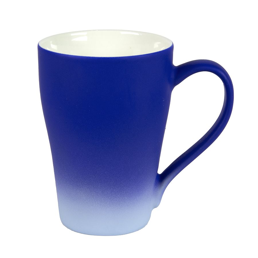 Кружка с прорезиненным покрытием и цветовым градиентом Переход от насыщенного оттенка в основной части кружки к совсем светлому внизу, для более выгодного представления логотипа на темной части Градиент - модный тренд, для его создания используются различные техники, краски и материалы, берутся различные цветовые сочетания Природа - главный творец градиента. Небо, море, бесконечные пески пустыни или горные вершины в снегу... Самые красивые и самые естественные цветовые сочетания - вокруг нас. Цвет темной части близкий к Pantone Reflex blueНе рекомендуется мыть в посудомоечной машине** Перед оформлением заказа рекомендуем ознакомиться с образцом ввиду особенностей прорезиненного покрытия, связанных с производством.