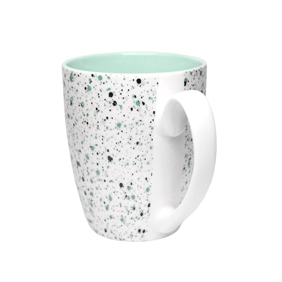 Кружка наиболее популярной формы с нежным цветом внутри и новым необычным покрытием снаружи. TERRAZZO - старинный венецианский узор с мелкими цветными вкраплениями. Изначально использовался для декорирования пола и изделий из камня. В современном интерьере этот материал стали использовать в самых неожиданных вариациях, при изготовлении посуды, мебели, кухонных фасадов, для оформления интерьера ванных комнат, в качестве светильников и других аксессуаров для дома. А проекты с использованием терраццо в интерьере заполонили Instagram и Pinterest дизайнеров и поклонников дизайна по всему миру. Цвет внутренней части близкий к Pantone 566C Внимание! Рисунок (цветные вкрапления) может просматриваться через нанесенное изображение