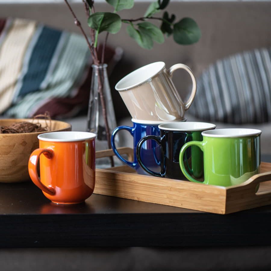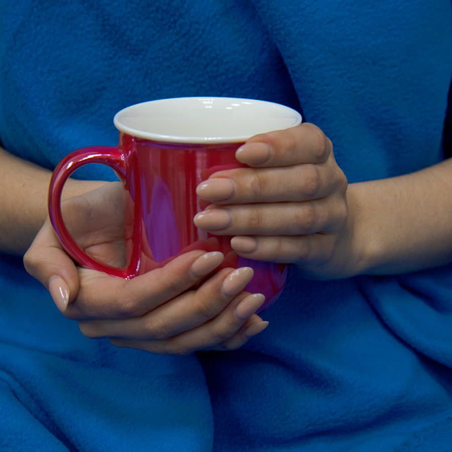Кружка необычной, скругленной внизу формы, дополнена белым кантом по верхнему краю и актуальным покрытием с жемчужным блеском или эффектом перламутра. Переливчатость цвета создается благодаря особой структуре покрытия, которая по-разному преломляет солнечные лучи. Цвет близкий к Pantone Pearled Ivory