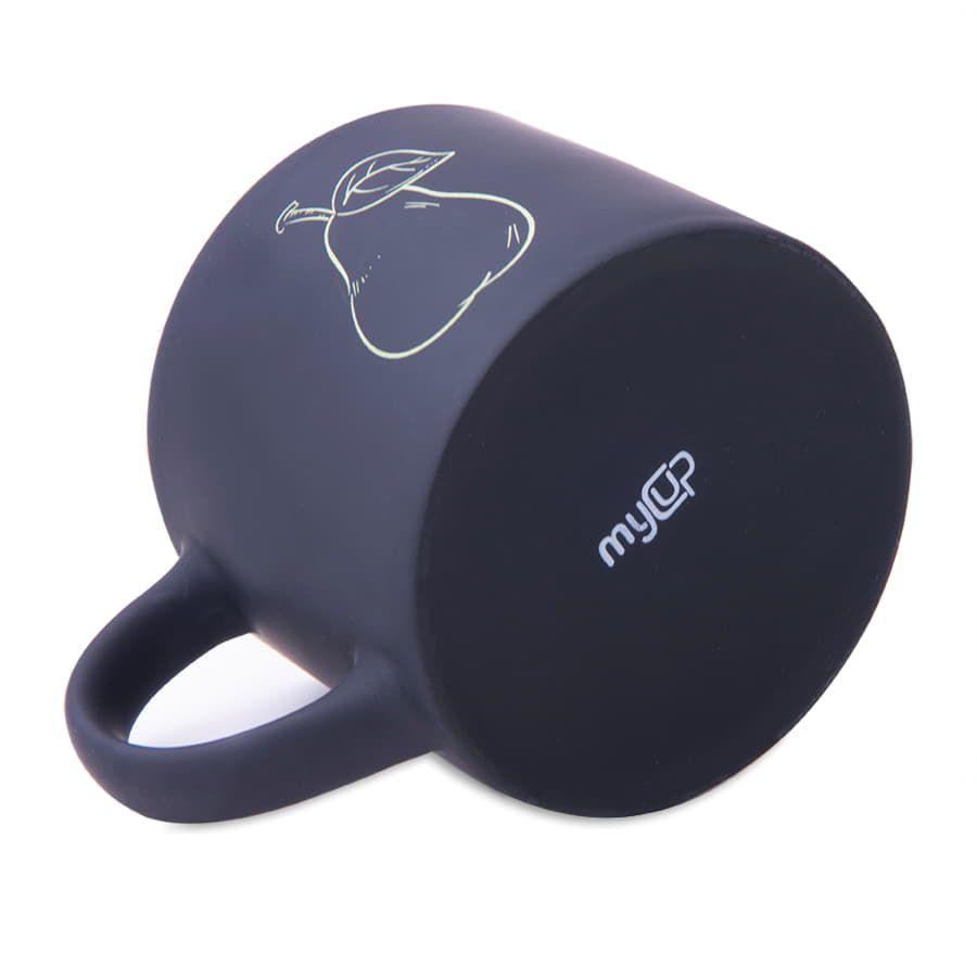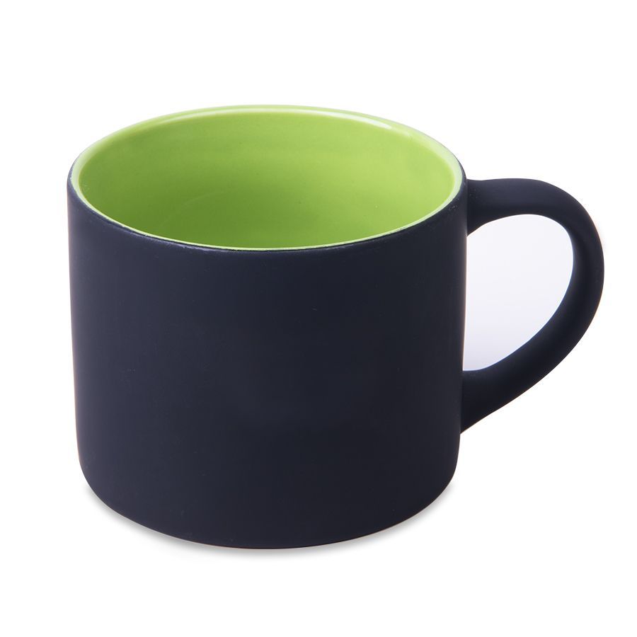 Кружка трендовой цилиндрической формы с черным прорезиненным покрытием.При гравировке подложка вскрывается в цвет внутренней части кружкиЦвет внутренней части близкий к Pantone 368CНе рекомендуется мыть в посудомоечной машине