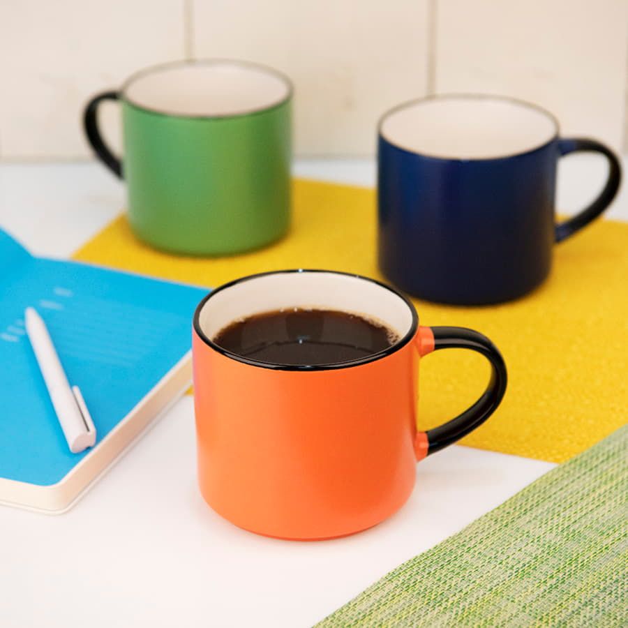 Ёмкая кружка трендовой цилиндрической формы с матовым покрытием.Яркий цветной корпус с черной ручкой и кантом по краю.Цвет близкий к Pantone 199C