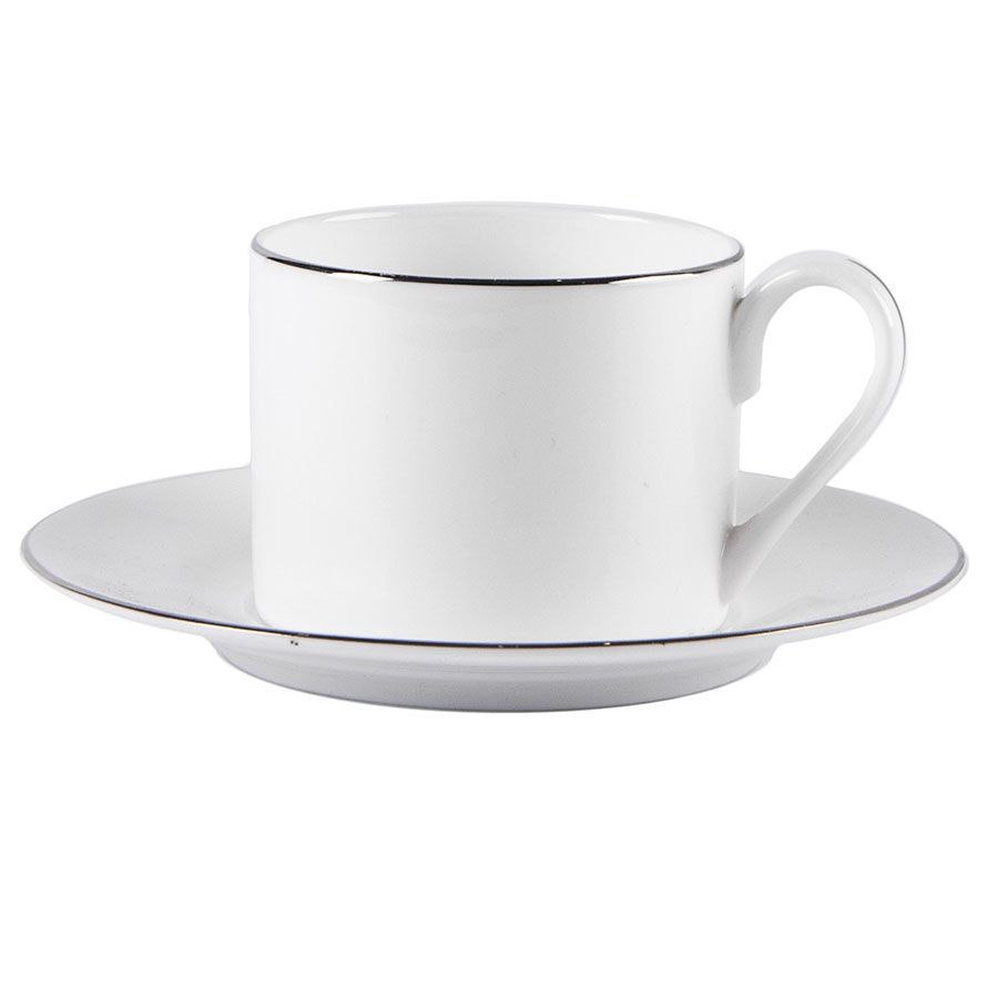 Благородство и умеренность — характерные черты этой чайной пары от собственной торговой марки BRISTOL. Элегантная чашка с блюдцем из костяного фарфора придаст особые ноты привычному чаепитию. Этот материал содержит в своем составе примеси обожженной костяной муки, которые делают ее гораздо легче аналогичных моделей. Его ценность обеспечивается древней историей, секрет создания которого хранили долгое время под строжайшим запретом. Благодаря качеству фарфора стенки такого изделия на порядок тоньше, при этом не теряют прочности. Чашка выполнена в классическом стиле объемом 200 мл. Блюдце имеет удобную выемку, которая не дает чашке скользить. Обе части набора оформлены серебряным кантом. Возможность персонализации горячей деколью придаст паре особый стиль и сделает ее отличным подарком. Чайная пара PLATINUM — аристократический стиль, который необходим каждому Чайная пара поставляется в подарочной коробке с ложементом*Внимание! Не рекомендуется мыть в посудомоечной машине.Кант гарантированно устойчив к ручном мытью в течении полугода.