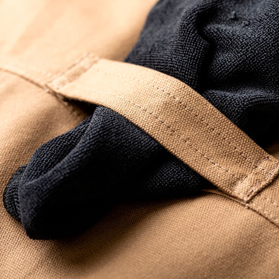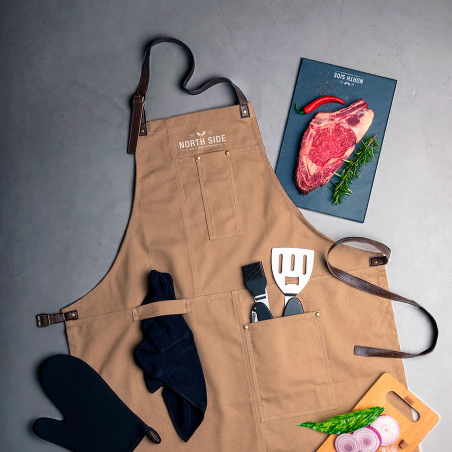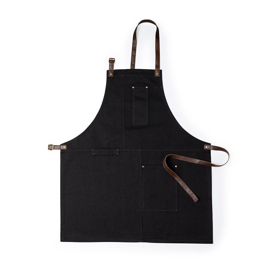 Фартук для истинных профессионалов в приготовлени различных блюд. Выполнен из плотного хлопка высокого качества 340 г м2. Поясные ремни и шейный выполнены из искусственной кожи с застежками и усилены металлическими заклепками. Карманы с двойной строчкой подойдут для различных кухонных аксессуаров.
