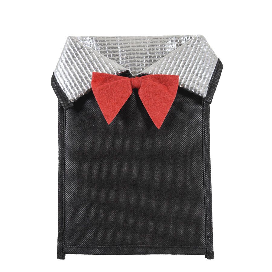 Термочехол для бутылки сохранит температуру напитка надолго (3-4 часа). Благодаря термоизолирующим свойствам чехла жидкость в бутылке останется той же температуры, что была до того, как вы положили бутылку в чехол. И вы сможете наслаждаться прохладой любимого напитка на протяжении всей новогодней ночи. Чехол выполнен в виде фрака-мужского вечернего костюма особого покроя, предназначенного для официальных мероприятий. Это придаст неповторимый колорит новогоднему столу и создаст соответствующее праздничное настроение.