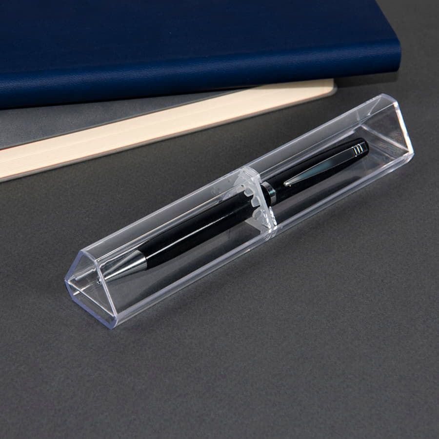 Пластиковый футляр треугольной формы с держателем для ручки. Подойдет для ручки диаметром от 9 до 12 мм и длиной до 150 мм. Футляр упакован в картонный шубер для защиты от царапин и потертостей.
