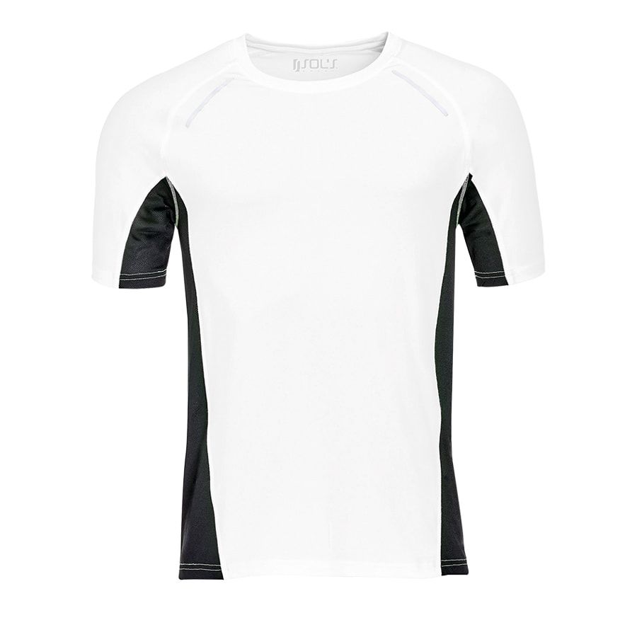 Мужская футболка с рукавами реглан для занятий спортом со светоотражающими элементами. Боковые вставки из "дышащей" сетки предназначены для вентиляции и отвода влаги.