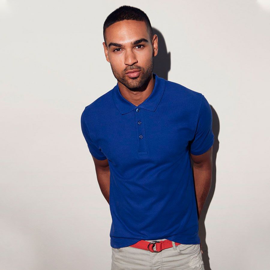 Мужское поло из 100% хлопка. Зауженный крой. Боковые швы. Планка с тремя перламутровыми пуговицами в тон изделия. Отрывной лейбл.